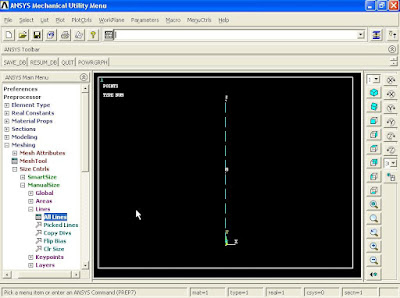 To mesh the model from Main Menu click Preprocessor - Meshing - Size Cntrls - ManualSize - Lines - Picked Lines. Then pick lines 1 and 3 and click OK.